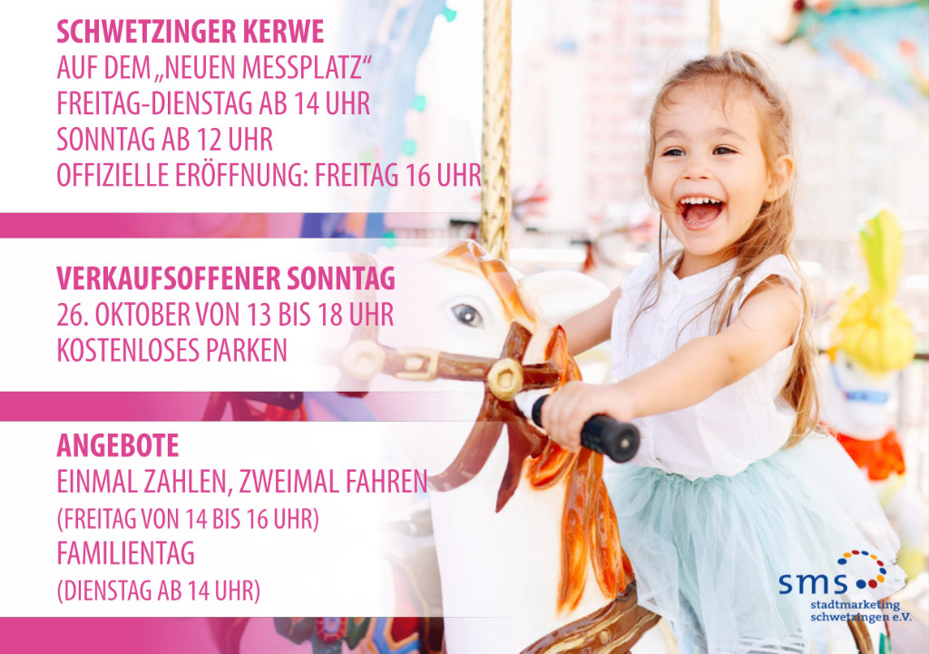Nutzen Sie die Gelegenheit, einen schönen Herbsttag mit der Familie zu genießen, gemütlich einzukaufen und das bunte Treiben der Schwetzinger Kerwe zu erleben.